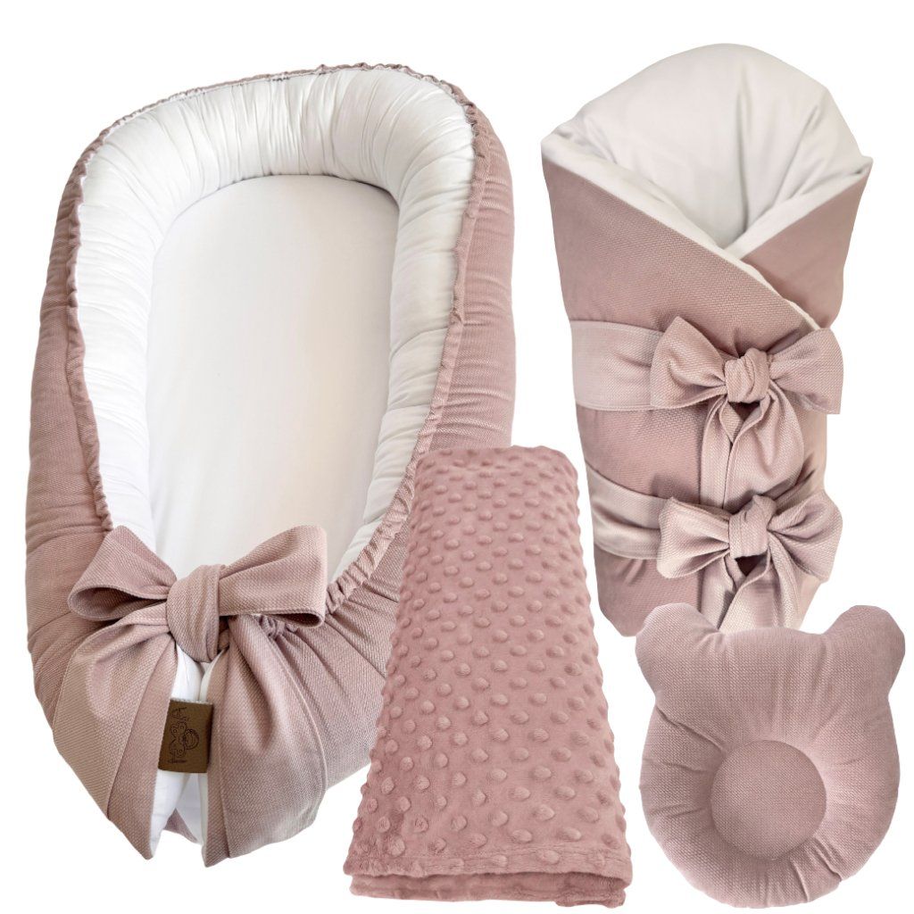 Predstavujeme vám elegantný 4-dielny set do postieľky v príjemnej kombinácii staroružovej a bielej farby. Tento kvalitný set zahŕňa všetko potrebné pre bezpečný a pohodlný spánok vášho bábätka - ergonomické hniezdo, praktickú zavinovačku, vankúš proti preležaniu a hrejivú minky deku. Všetky komponenty sú vyrobené z certifikovaných materiálov OEKO-TEX, aby poskytli vášmu dievčatku maximálnu bezpečnosť a komfort od prvých dní života.