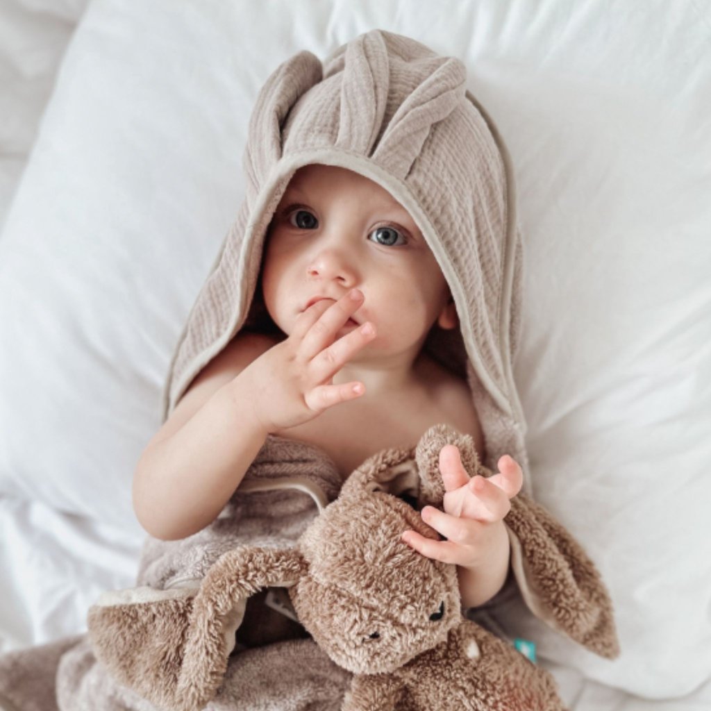 Detská bambusová osuška s uškami v béžovej farbe je vyrobená z prémiovej zmesi 50% bambusových a 50% bavlnených vlákien. Táto jemná a hutná tkanina poskytuje vášmu bábätku maximálny komfort po kúpaní. Praktická mušelínová kapucňa s uškami nielen efektívne osuší hlavičku vášho dieťatka, ale stane sa aj obľúbeným doplnkom pri každodennej starostlivosti o novorodenca.