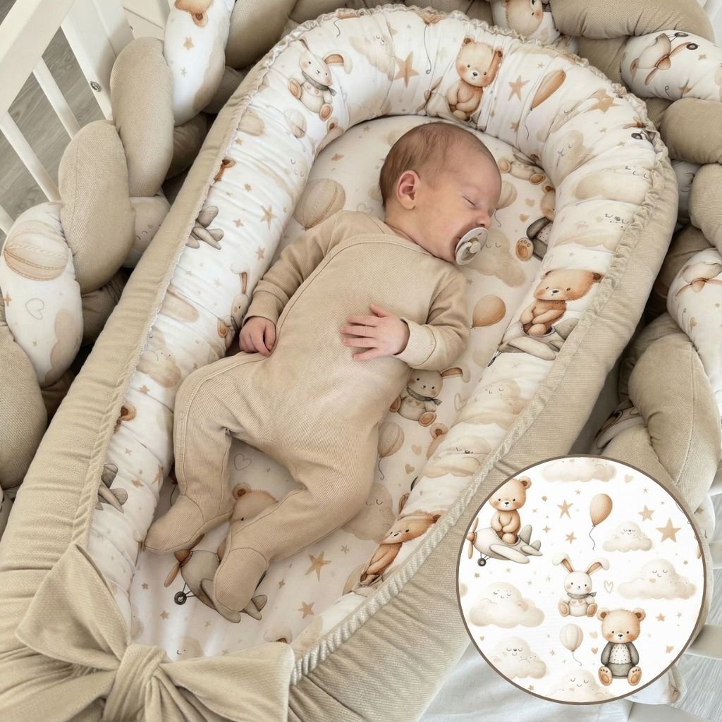 Detské hniezdo Medvedík v lietadle poskytuje vášmu bábätku pocit bezpečia a komfortu, ktorý pripomína útulnosť maminého náručia. Tento multifunkčný pomocník s roztomilým dizajnom sa stane nenahraditeľnou súčasťou prvých mesiacov života vášho dieťatka - či už doma v postieľke, na návšteve u starých rodičov alebo počas vašich spoločných ciest.