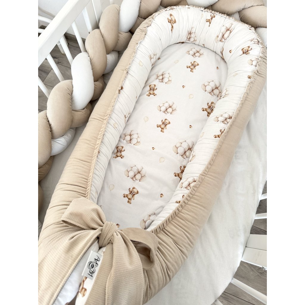 Detské hniezdo "Medvedík v oblakoch" vytvára vášmu bábätku pocit bezpečia a pohodlia počas spánku aj bdenia. Toto ručne šité hniezdo z prémiovej kombinácie velvet látky a kvalitnej bavlny poskytuje vášmu najmenšiemu dokonalý priestor na oddych aj hru - či už doma, v kočíku alebo na cestách. Hniezdo do postieľky je navrhnuté tak, aby podporovalo prirodzený pocit bezpečia a pomáhalo bábätku pri adaptácii na svet okolo neho.
