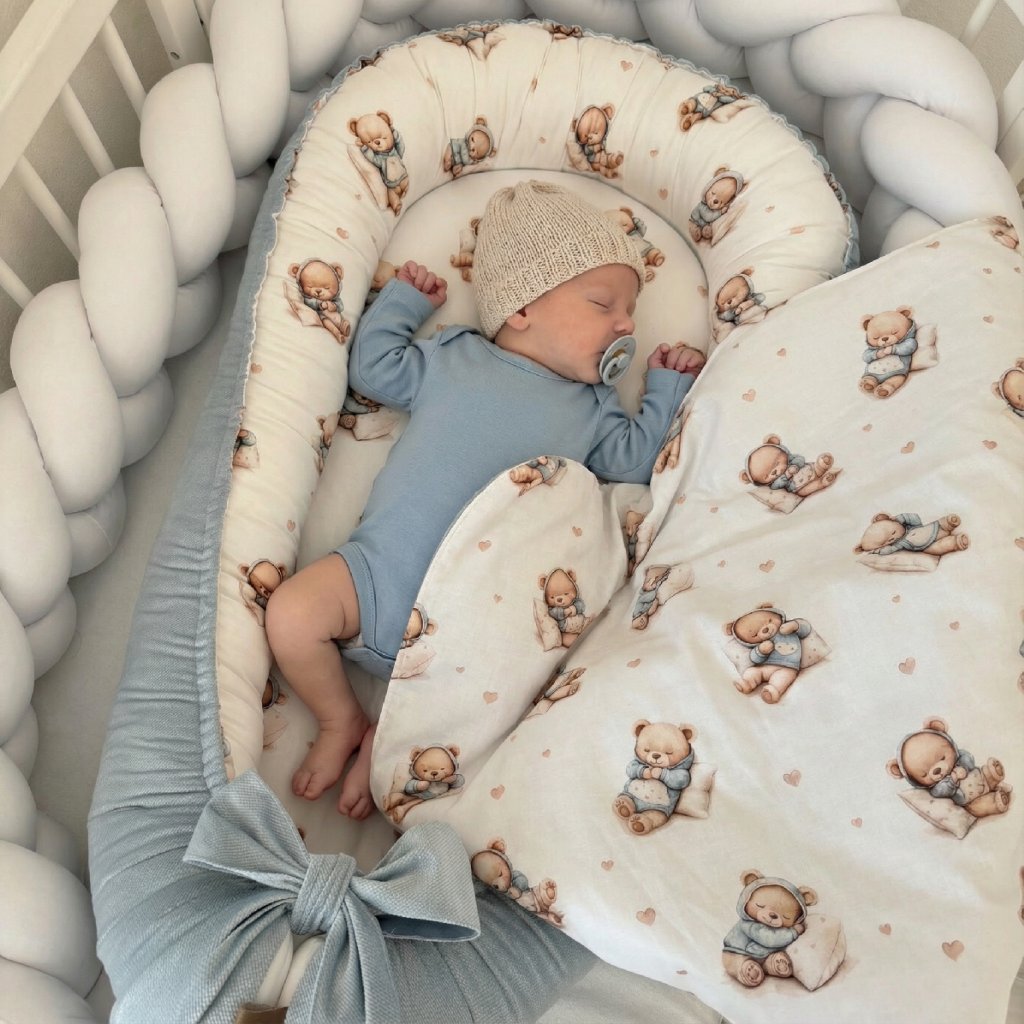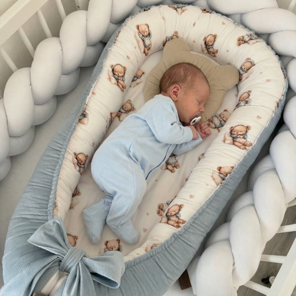 Doprajte vášmu chlapčekovi bezpečie a komfort s naším hniezdom pre bábätko s motívom medvedíka. Vďaka kvalitným materiálom, premyslenému dizajnu a multifunkčnému využitiu sa hniezdo do postieľky pre chlapca stane nenahraditeľným pomocníkom v prvých mesiacoch života vášho bábätka.