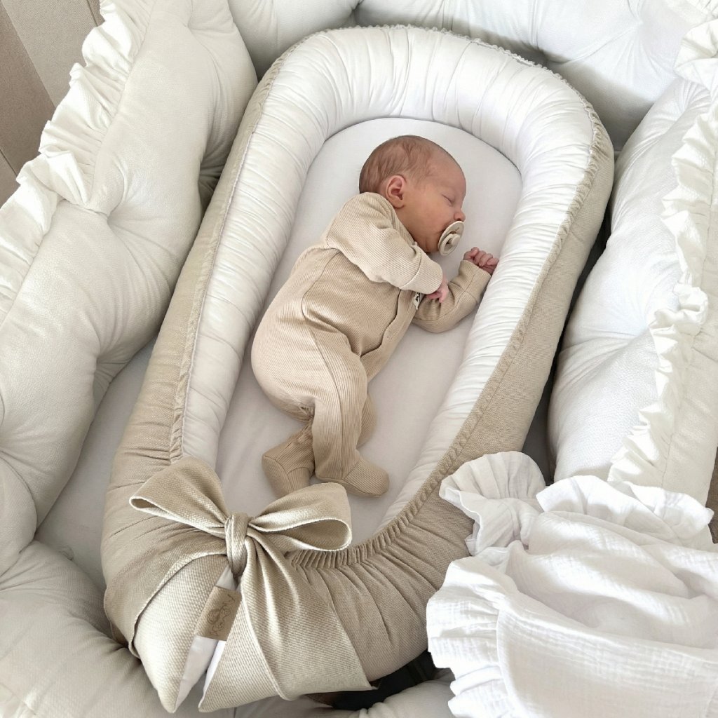 Luxusné Hniezdo pre Dievčatko – Béžová s Bielou: Bezpečie a Pohodlie pre Vaše Bábätko