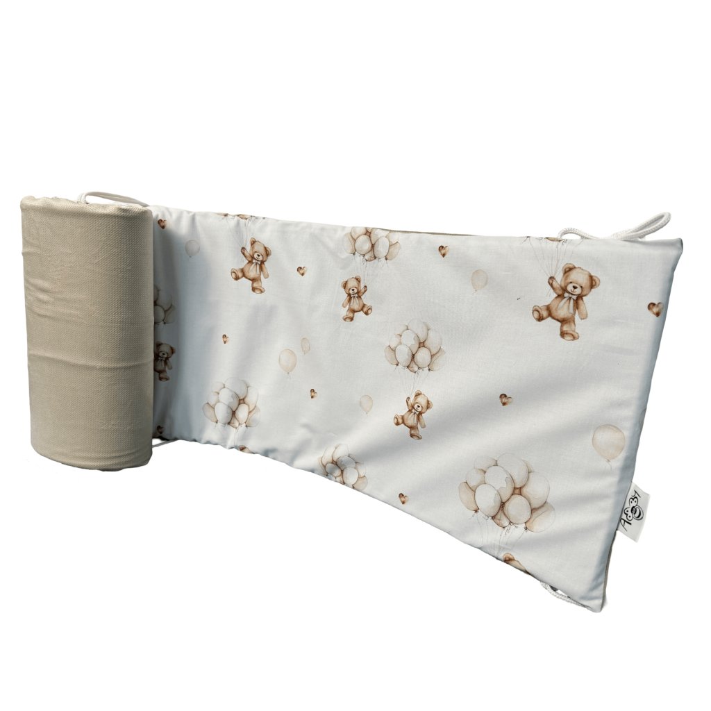 Mantinel do postieľky "Medvedík v oblakoch" prináša do vašej detskej izby nielen bezpečnosť, ale aj kúzlo detských snov. Tento ochranný mantinel na posteľ je vyrobený z prémiových hypoalergénnych materiálov a poskytuje spoľahlivú ochranu pred nárazmi do tvrdých hrán postieľky. Roztomilý dizajn s medvedíkmi plávajúcimi medzi obláčikmi zároveň vytvára pokojnú atmosféru pre sladký spánok vášho dieťatka.