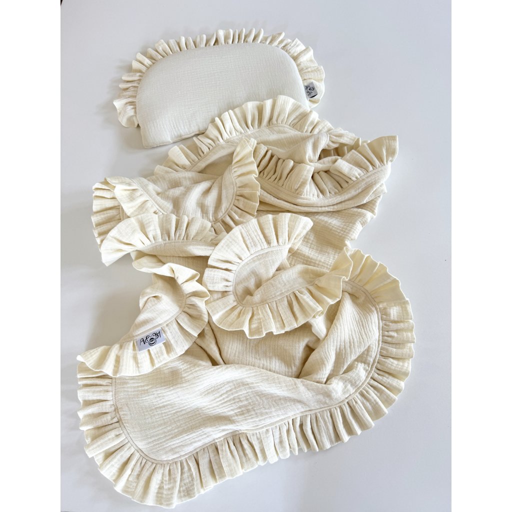 - Obsah balenia: Mušelínová deka, plochý vankúšik, návod na starostlivosť