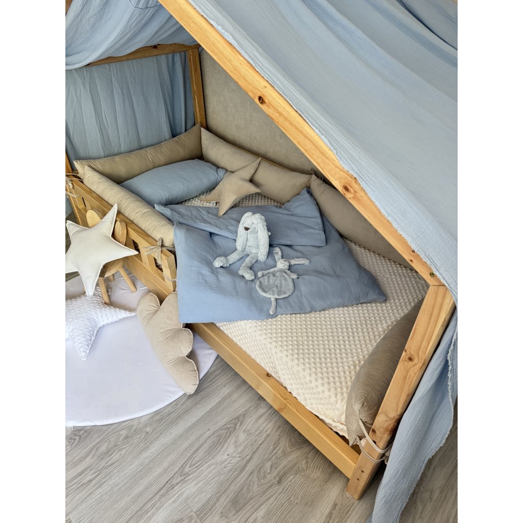 Vytvorte svojmu dieťatku kúzelný priestor, kde sa fantázia stretáva s pohodlím. Naša mušelínová strieška je navrhnutá špeciálne pre domčekové postele a dodá izbičke hebký, vzdušný nádych prírody a pokoja.