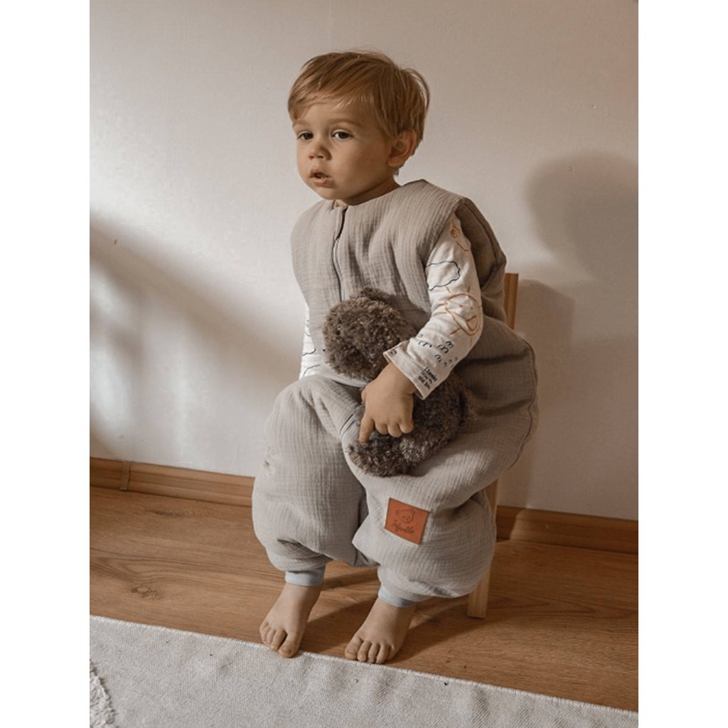 Nožičkový spací vak z béžového mušelínu predstavuje praktické riešenie pre aktívne deti, ktoré potrebujú voľnosť pohybu aj počas spánku. Tento spací vak s nohami kombinuje bezpečnosť tradičného spacieho vaku s komfortom a mobilitou, ktorú deti potrebujú. Vďaka prémiovému dvojvrstvovému mušelínu poskytuje ideálnu priedušnosť pre teplejšie obdobia, zatiaľ čo špeciálny strih zabezpečí, že vaše dieťa zostane príjemne prikryté celú noc.