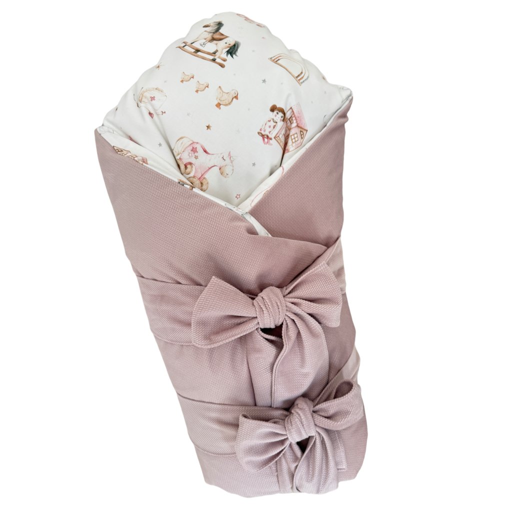 Páperová rýchlozavinovačka s ružovými hračkami poskytne vášmu novorodencovi príjemný pocit istoty a tepla, ktorý mu pomôže ľahšie sa adaptovať na svet mimo mamičkinho bruška. Výplň z prírodného husacieho páperia zabezpečuje efektívnu termoreguláciu – v zime hreje, v lete príjemne dýcha. Praktický dizajn s odnímateľnými časťami umožňuje využívať páperovú zavinovačku od prvých dní až po obdobie, keď z nej dieťatko vyrastie.