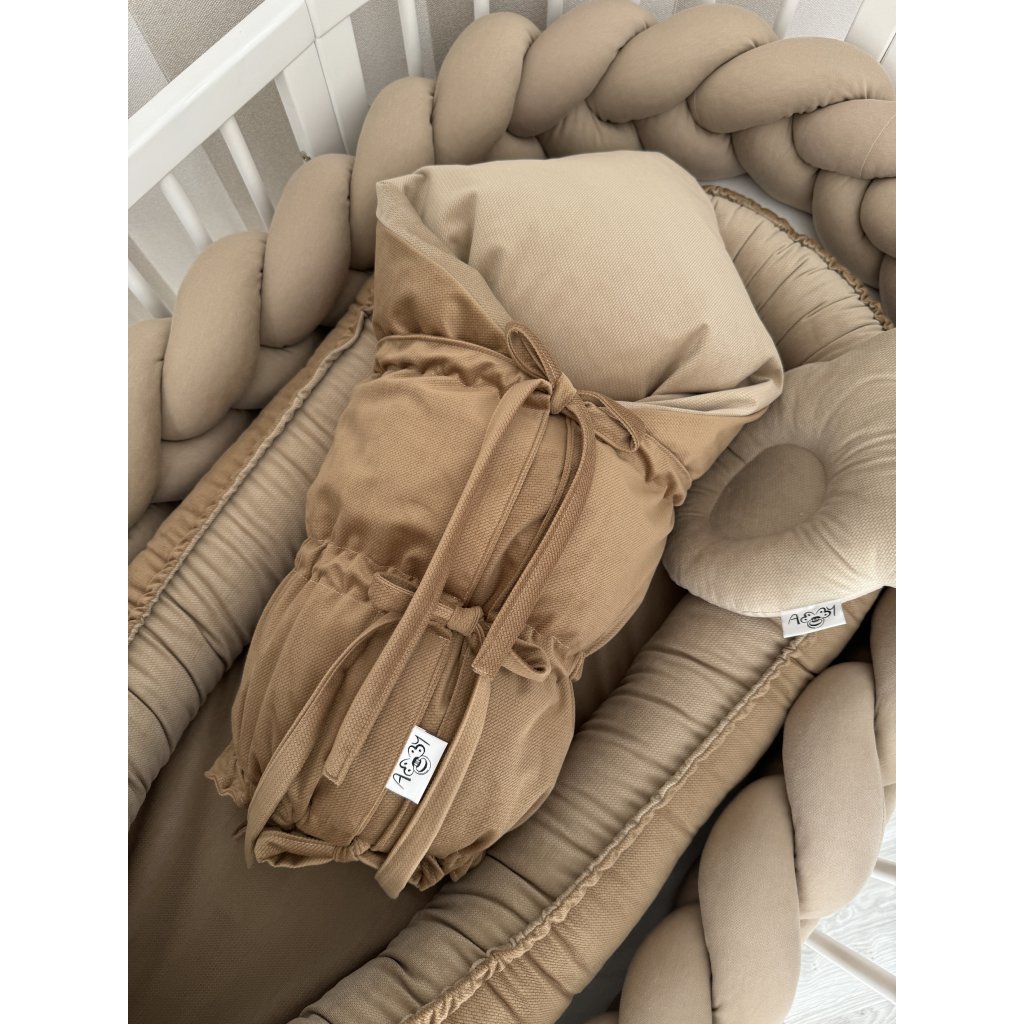 Páperová šnurovacia zavinovačka Brown vytvára pre vaše bábätko bezpečný a komfortný priestor, ktorý pripomína pocit z mamičkinho bruška. Vďaka kvalitnej výplni z husacieho páperia a peria poskytuje prirodzenú termoreguláciu a jemnú podporu, ktorá prispieva k správnemu vývinu vášho drobčeka. Praktický šnurovací systém umožňuje jednoduché používanie a prispôsobenie veľkosti, čím zabezpečuje maximálny komfort pre bábätko aj pohodlie pre rodičov.