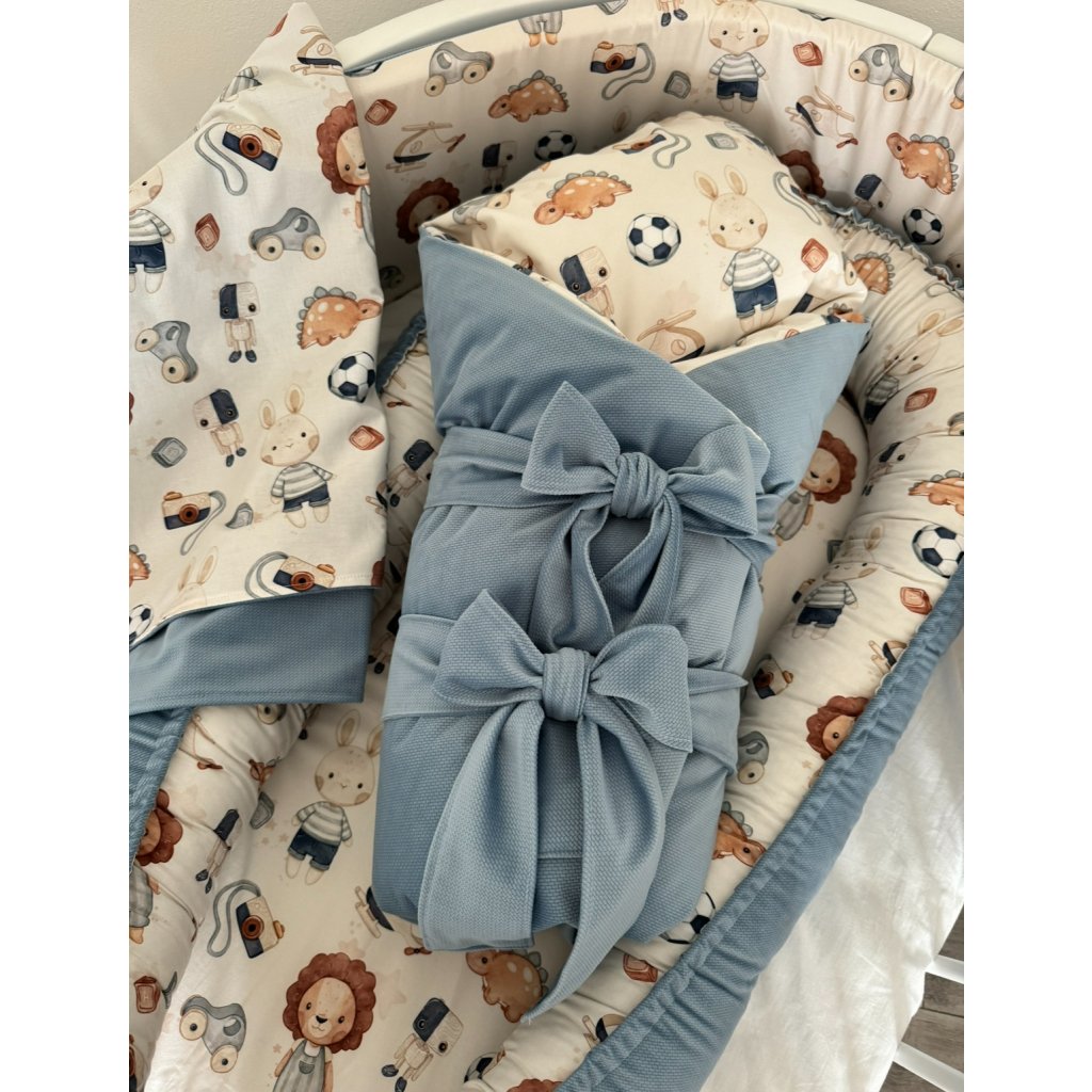 - Bavlnené obliečky na detskú postieľku ladené k zavinovačke