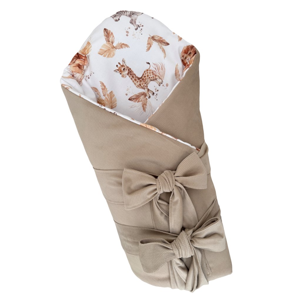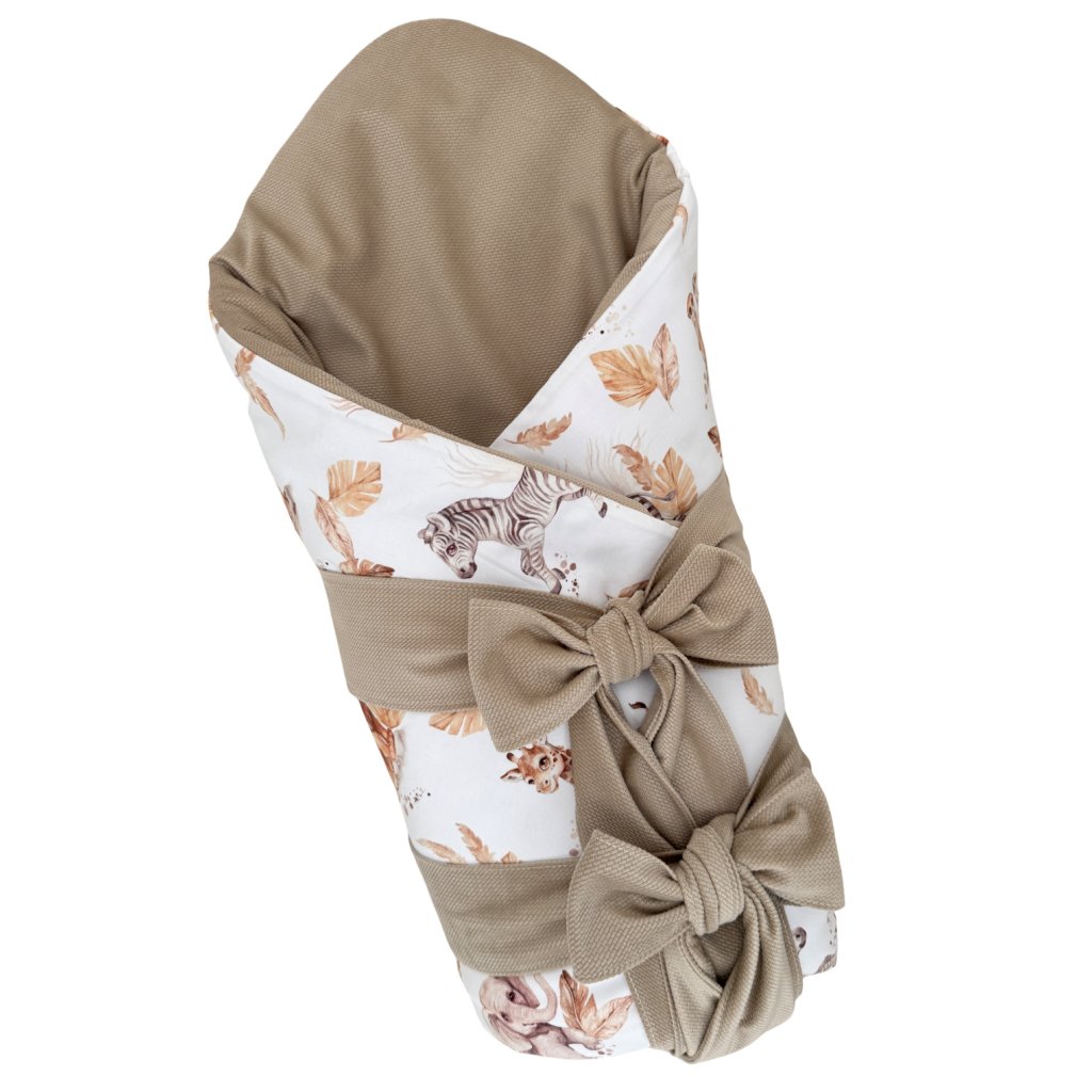 Rýchlozavinovačka Safari pre chlapčeka spája praktický dizajn s maximálnou funkčnosťou. Tento pomocník poskytne vášmu malému objaviteľovi pocit bezpečia a tepla vďaka premyslenému trojdielnemu systému s odnímateľným viazaním. Zavinovačka s motívom Safari je vyrobená z certifikovaných materiálov šetrných k detskej pokožke a ponúka výber medzi luxusnou páperovou alebo praktickou vatelínovou verziou. Doprajte vášmu synčekovi komfort pre jeho pokojný spánok a správny vývoj.
