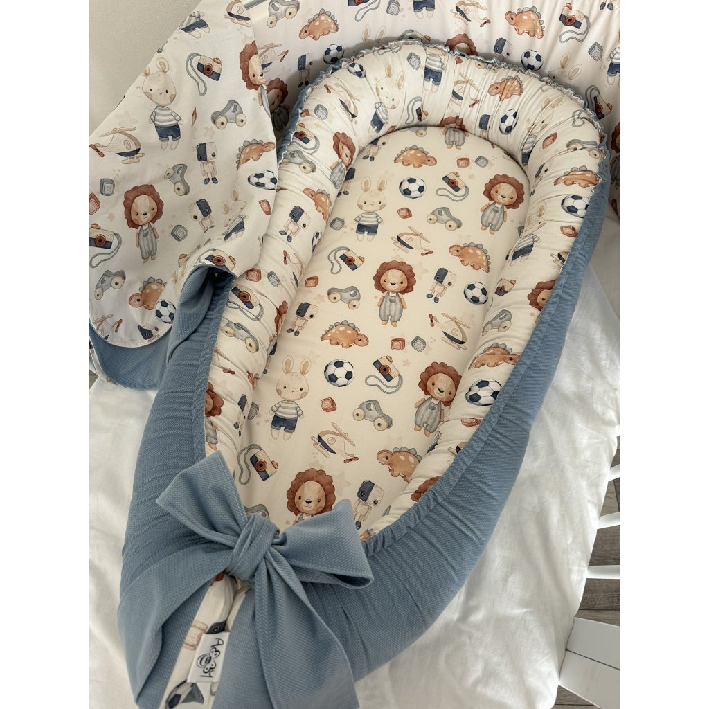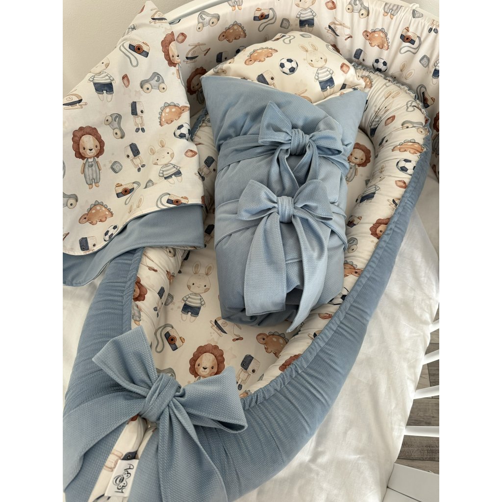 Set do postieľky 3v1 - Hračky predstavuje praktické riešenie pre vašu detskú izbičku. Tento kvalitný set kombinuje ergonomické hniezdo, pohodlnú zavinovačku a mäkkú deku v jednom balení, čím poskytuje vášmu novorodencovi bezpečie a komfort počas prvých mesiacov života. Súprava do postieľky je navrhnutá tak, aby uľahčila rodičom starostlivosť o bábätko a zároveň vytvorila ideálne prostredie pre jeho zdravý vývoj.