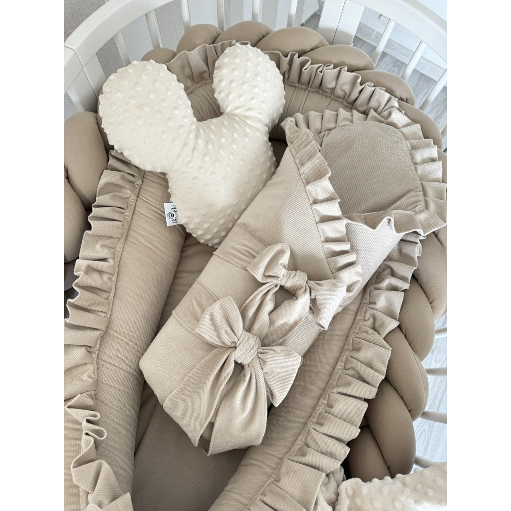 Set do postieľky 4v1 "Béžový, velvet basic" prináša vášmu bábätku komfort a bezpečie v elegantnom béžovom prevedení. Táto praktická súprava do postieľky obsahuje všetko potrebné pre spokojný spánok vášho dieťatka - kvalitné hniezdo veľkosti M, mäkkú zavinovačku, príjemnú minky deku a roztomilý dekoračný vankúšik myšiak. Vyrobený z certifikovaných materiálov, tento set do detskej postieľky predstavuje komplexné riešenie pre rodičov, ktorí hľadajú kvalitu a praktickosť v jednom balení.