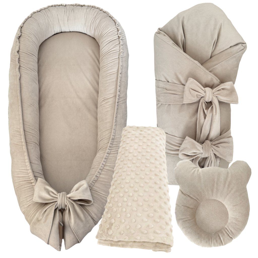 Objavte luxusný set do postieľky 4v1 v béžovom prevedení! Ergonomické hniezdo, jemná zavinovačka, vankúš proti preležaniu hlavičky a minky deka zabezpečia dokonalý komfort a bezpečie pre vaše bábätko. Vytvorte útulné prostredie pre kvalitný spánok!