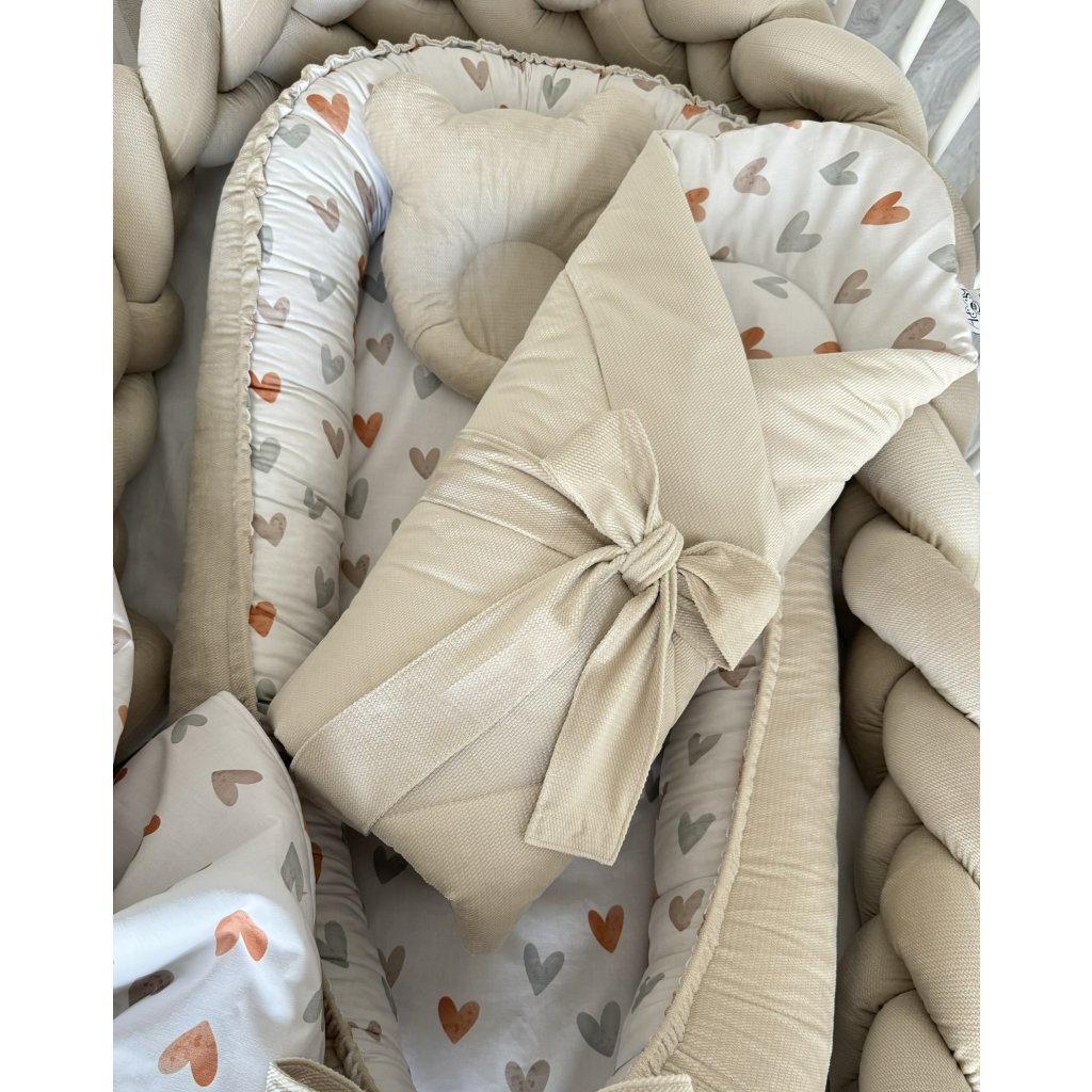 Set do postieľky Farebné srdiečka predstavuje kompletnú 4-dielnu výbavičku, ktorá premení postieľku vášho drobčeka na bezpečné a útulné miesto. Tento kvalitný set obsahuje ergonomické hniezdo veľkosti M, praktickú zavinovačku, mäkkú klasickú deku a vankúš podporujúci správne držanie hlavičky - všetko v roztomilom dizajne s farebnými srdiečkami, ktorý dodá detskej izbe moderný a hravý vzhľad.Prečo si vybrať práve tento set do postieľky?
