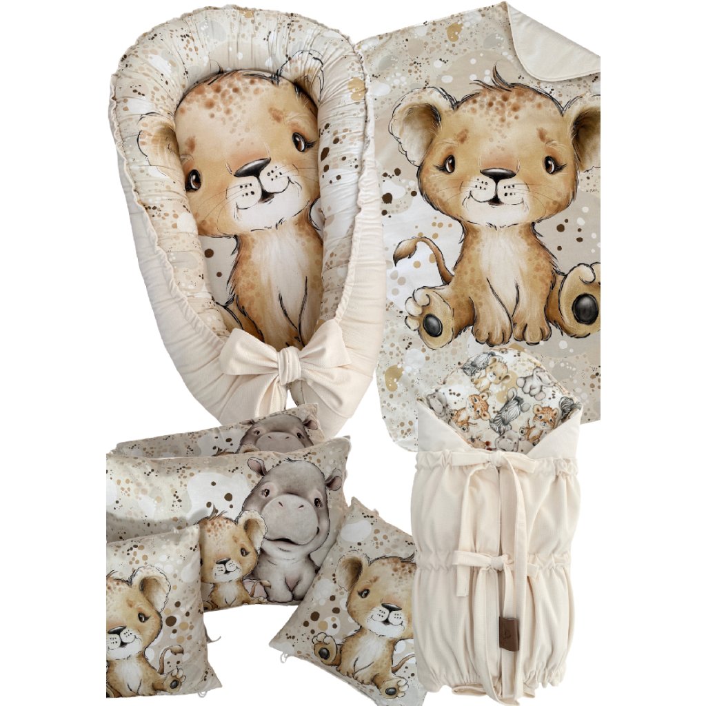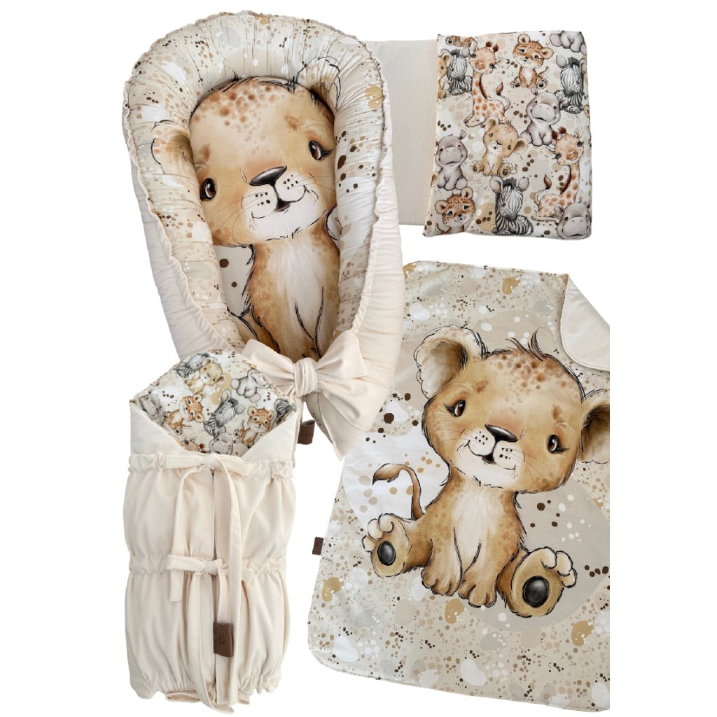 Set do postieľky 4v1 – Safari je kompletná výbava pre bábätko od narodenia. Obsahuje hniezdo, zavinovačku, deku a mantinel v jemnom safari dizajne. Vyrobený z prémiovej 100 % bavlny a mäkkého velvetu pre maximálne pohodlie, bezpečie a pokojný spánok. Vhodný pre chlapcov aj dievčatá.