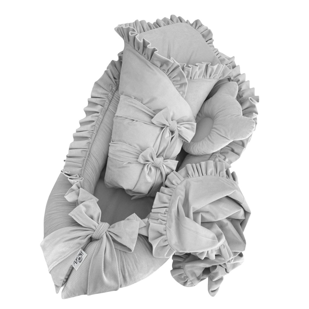 Velvet basic set 4v1 v elegantnej sivej farbe prináša všetko, čo vaše bábätko potrebuje pre kvalitný komfort a bezpečie. Tento prémiový set do postieľky zahŕňa hniezdo s volánom, páperovú zavinovačku s mašľami, velvet deku a vankúš proti preležaniu hlavičky - všetko v jednom balení pre spokojnosť vášho najmenšieho.
