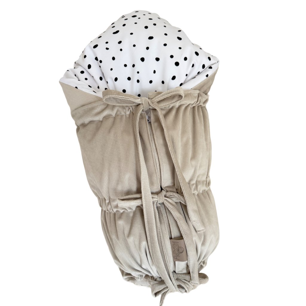 Páperová šnúrovacia zavinovačka s čiernymi bodkami poskytuje vášmu bábätku pocit istoty a tepla, ktorý poznalo z maminkinho bruška. Tento praktický pomocník zlepšuje kvalitu spánku novorodenca a vďaka premyslenému dizajnu so snímateľným viazaním ponúka dlhodobé využitie aj po tom, ako z nej bábätko vyrastie. Klasická šnúrovacia zavinovačka s výstužou je nenahraditeľným prvkom výbavy pre každého novorodenca.