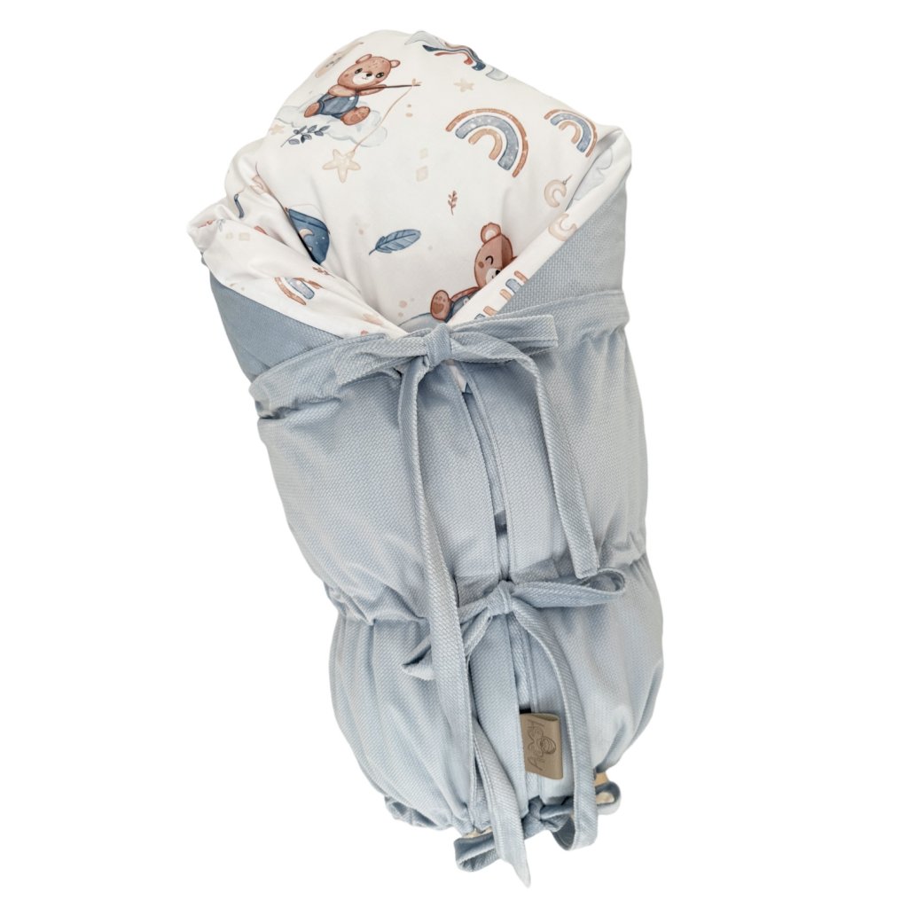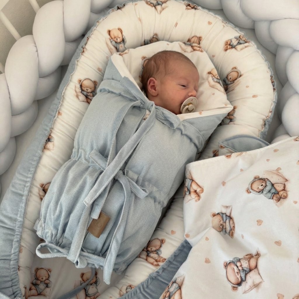 Šnúrovacia páperová zavinovačka Modrý medvedík - Bezpečné objatie pre vaše bábätko