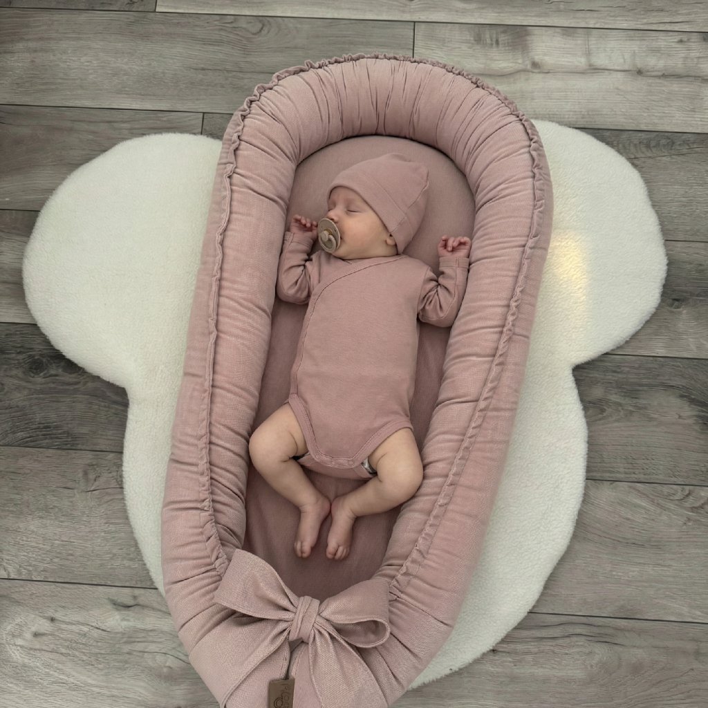 Velvet hniezdo pre bábätko - Staroružová (V2): Luxusný komfort pre pokojný spánok vášho pokladu