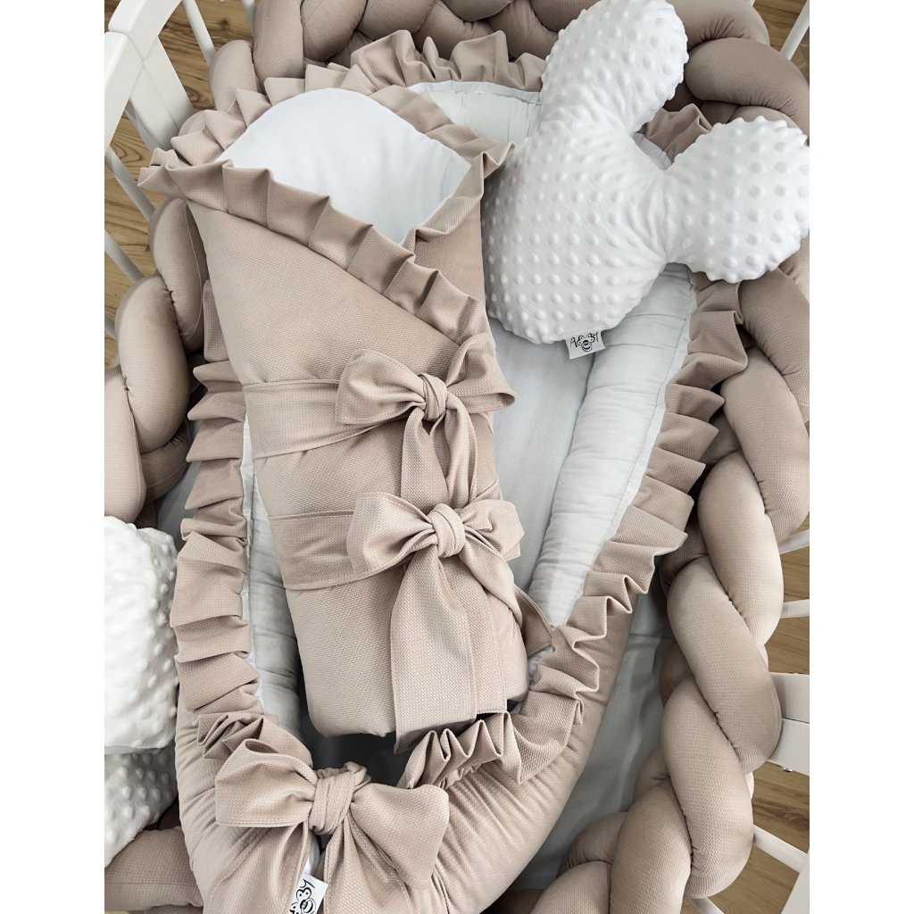Velvet hniezdo s bavlnou pre bábätko v elegantnom odtieni ľadovej béžovej s bielou poskytuje vášmu dieťatku bezpečné a útulné prostredie. Kombinácia luxusného velvetu a prémiovej bavlny vytvára mäkké a pohodlné miesto, ktoré podporuje pokojný spánok a celkový komfort vášho najmenšieho pokladu. Toto detské hniezdo do postieľky je navrhnuté tak, aby ste ho mohli jednoducho prenášať v rámci domácnosti, na návštevy alebo na cestách.