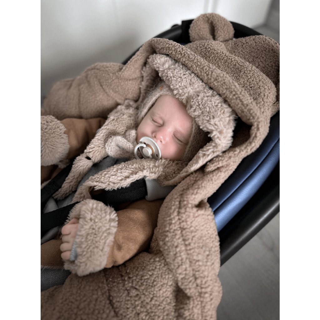 Zavinovačka do autosedačky Teddy hnedá - Hrejivá ochrana s roztomilými uškami pre vaše bábätko